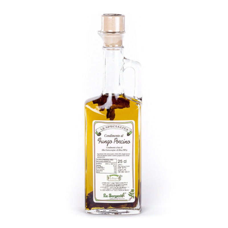 Olio Extravergine di oliva 95%, funghi porcini essiccati (Boletus edulis e relativo gruppo) 4,5%, aroma naturale 0,5%